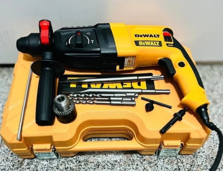 ✔ به همراه دو عدد قلم تخت و تیز، سه عدد مته چهار شیار( سایز ۶، ۸ و ۱۰)، سه نظام اضافی و ذغال یدک
