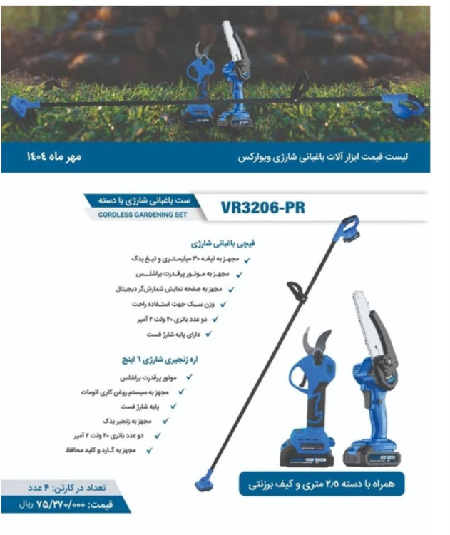 ست باغبانی شارژی ۲۰ ولت براشلس دو باتری ویوارکس مدل VR3206-PR