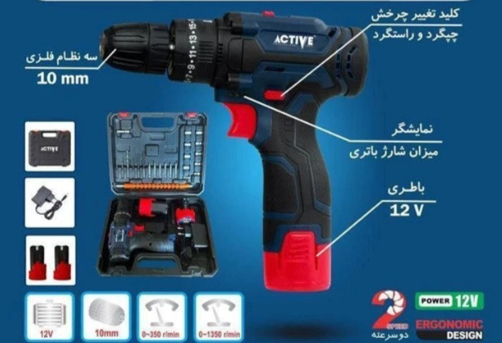 دریل شارژی ۱۲ ولت چکشی ۲ باتری اکتیو مدل AC-3112BRمشخصات کلی
