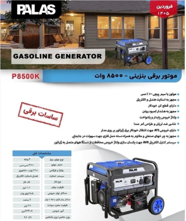 موتور برق بنزینی پالاس 8500وات مدل P8500K