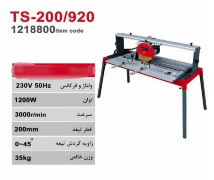 اره کاشی بر ۲۰۰ میلیمتر لیزری ۱۲۰۰ وات با طول برش ۹۲ سانت محک مدل TS-200/920 اره کاشی بر محک