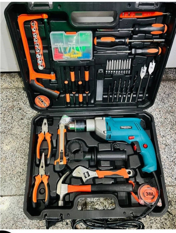 کیت ۱۰۰ عددی دریل ۱۳ میلیمتر چکشی طرح ماکیتا با لوازم کامل مدل KIT-100