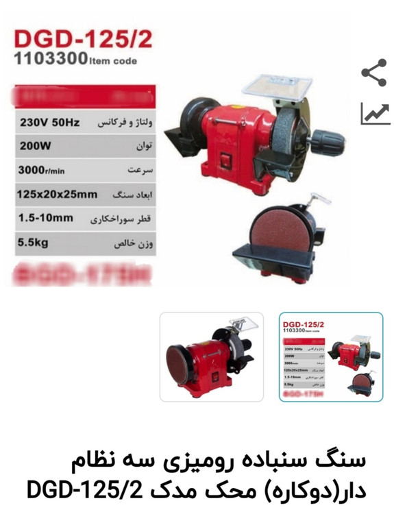 سنگ سنباده رومیزی سه نظام دارمحک دوکاره مدل DGD-125/2