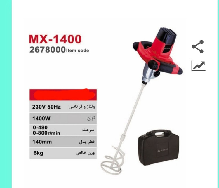 مشخصات فنی و کاربرد میکسر 1400 وات گیربکسی دورمتغیر محک:
