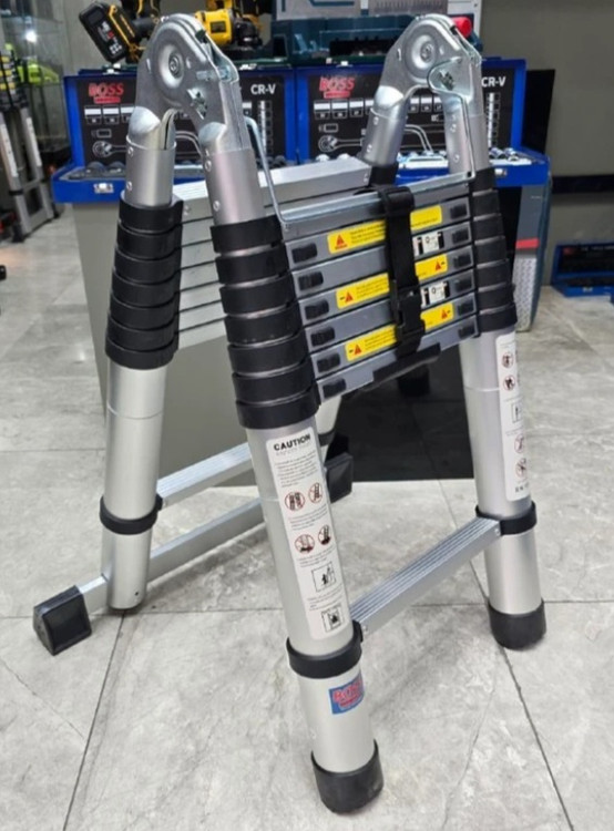کیفیت عالی فوق العاده قوی و حرفه ای و درجه یک یک مدام کار با اطمینان خرید کنید تکنو ابزار وحید ⭐ نردبان تلسکوپی ۲.۵ متری دو طرفه صنعتی