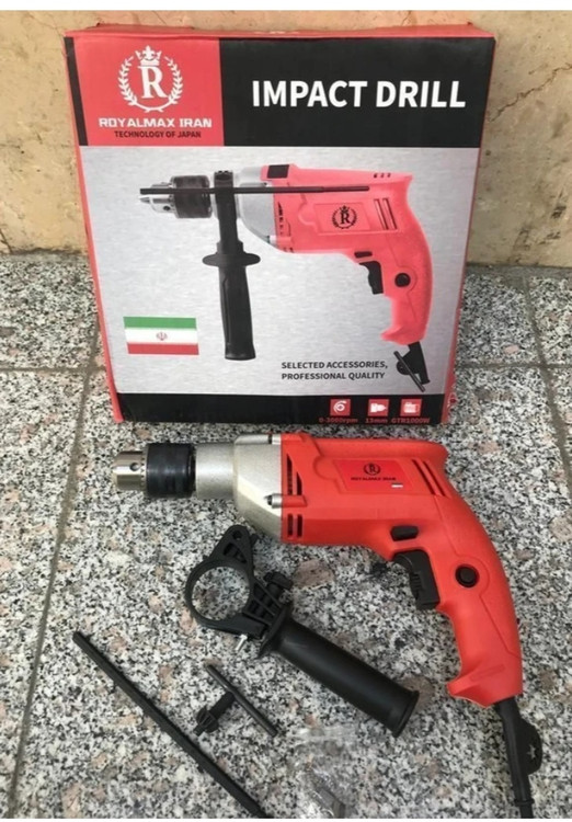 دریل ۱۳ گیربکسی چکشی نیم تنه فلزی ۱۰۰۰ وات رویال مدل GTR1000W