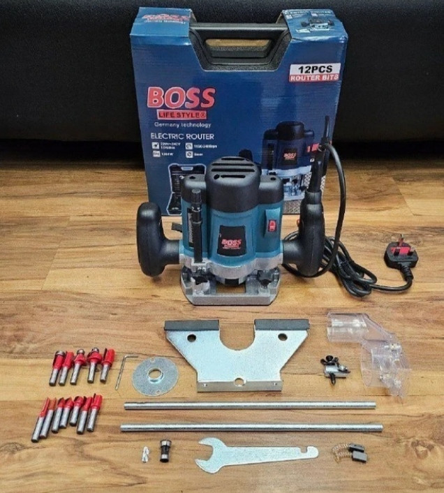 ✔ به همراه ریل، کشویی، ذغال یدک و آچار تنظیم ، ۱۲ عدد مته اور فرز در سایزها و مدل های مختلف