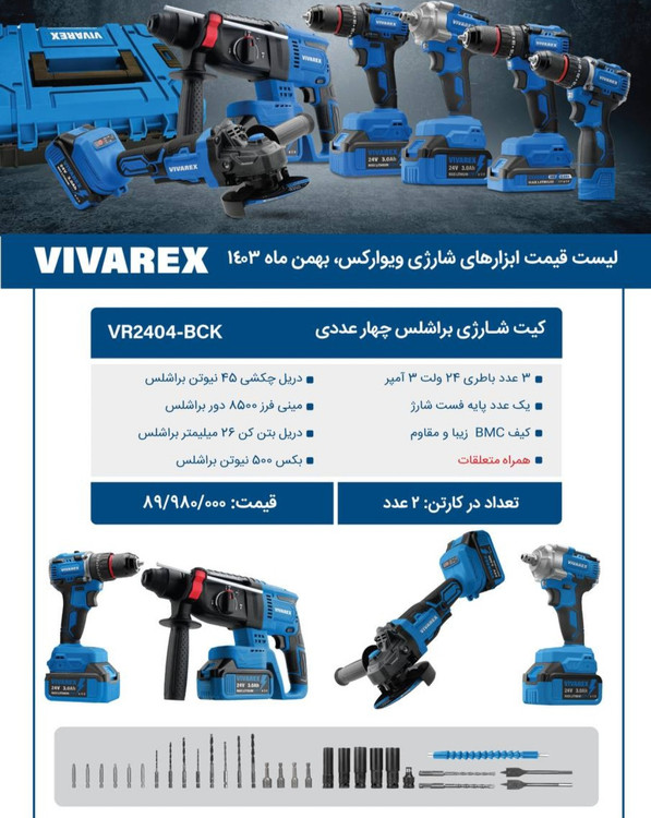 کیت شارژی 4 عددی براشلس 24 ولت ویوارکس مدل VR2404-BCK