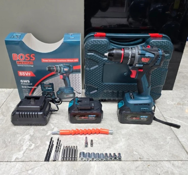 دریل شارژی 88 ولت براشلس چکشی باس